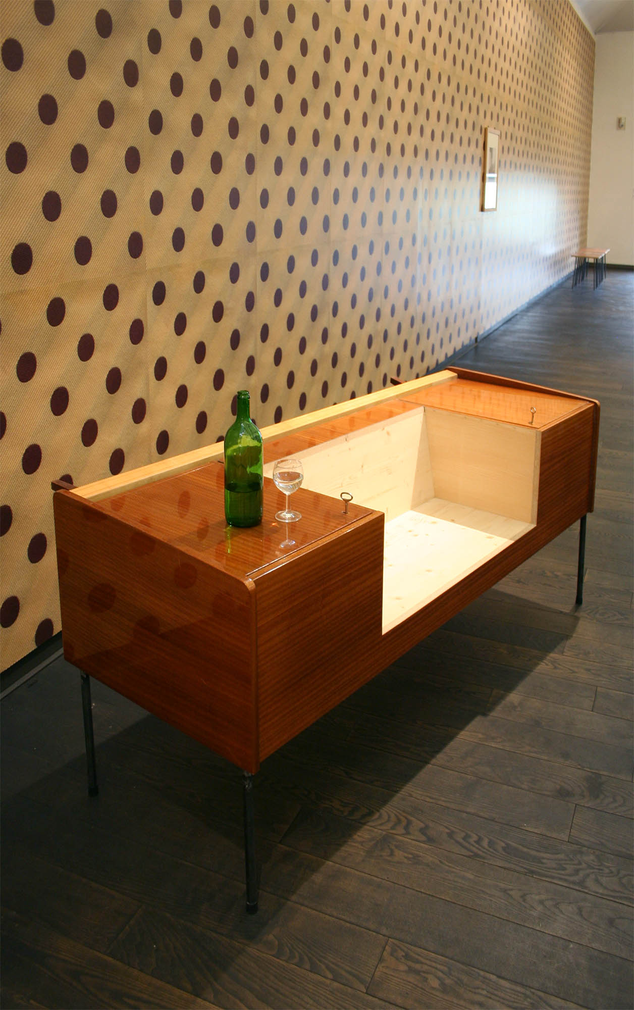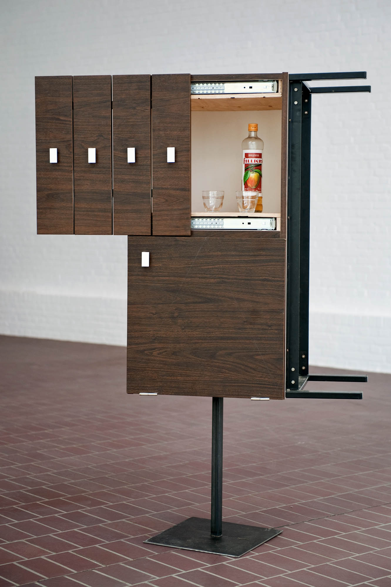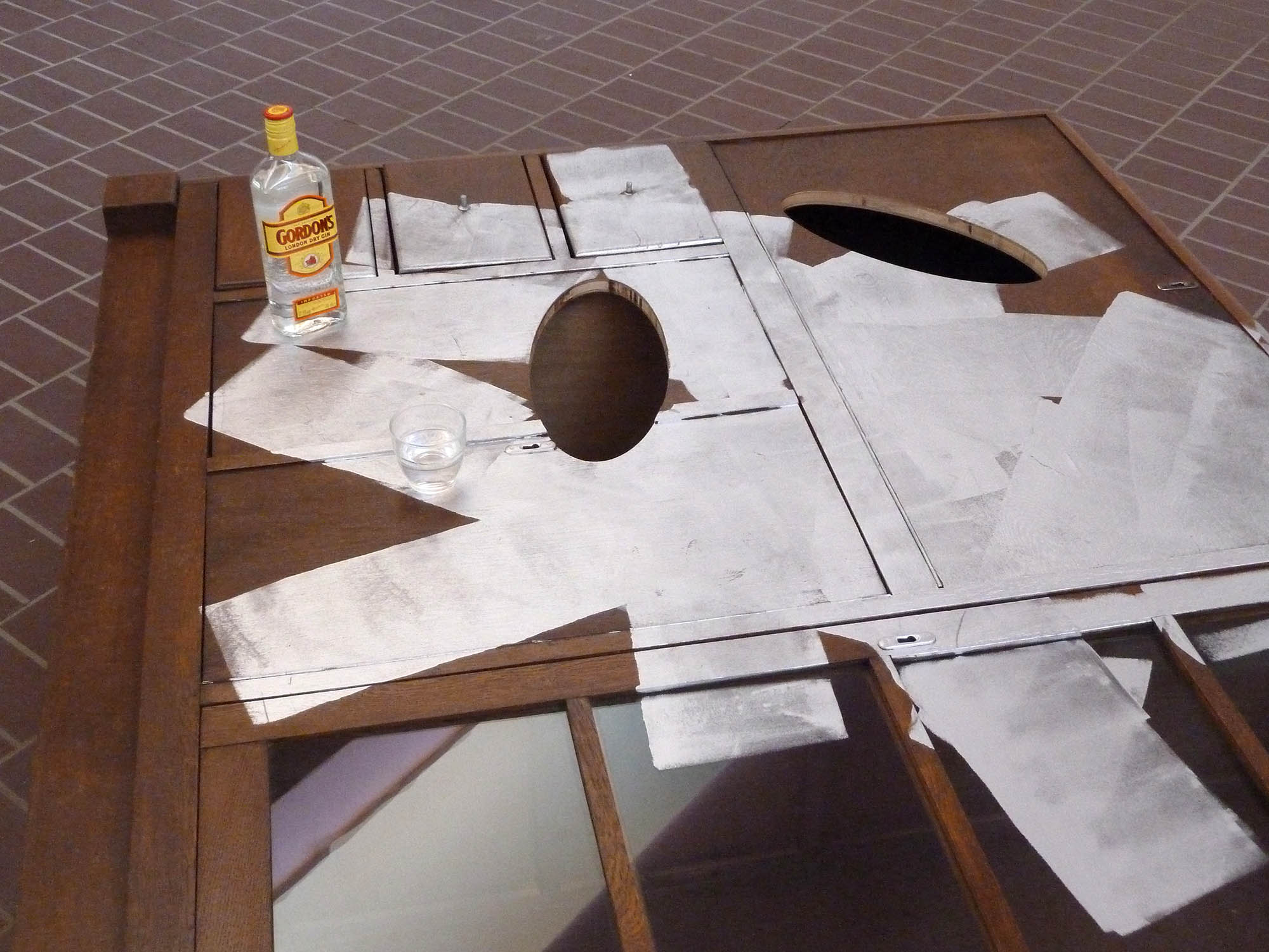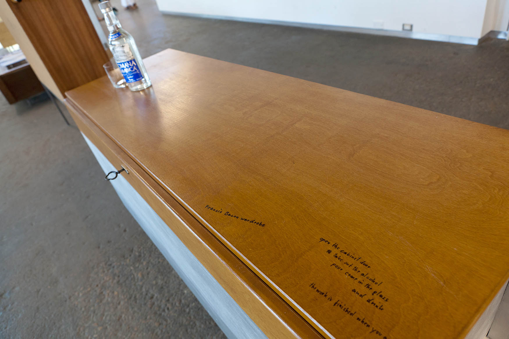 BarStyrofoam, epoxy, paint, closet, alcohol bottle, glass