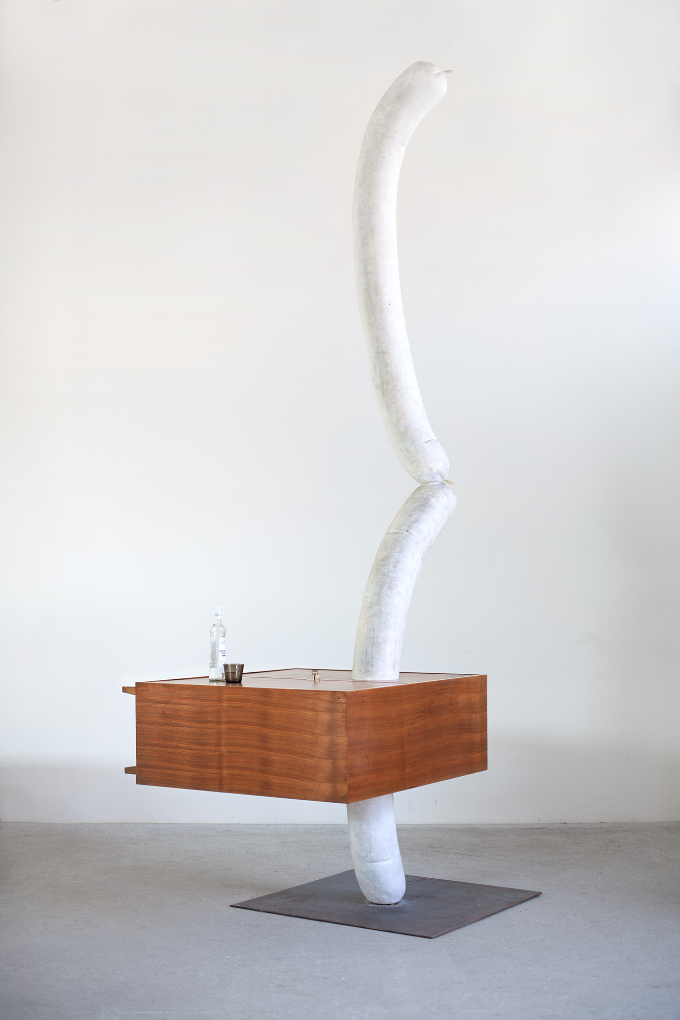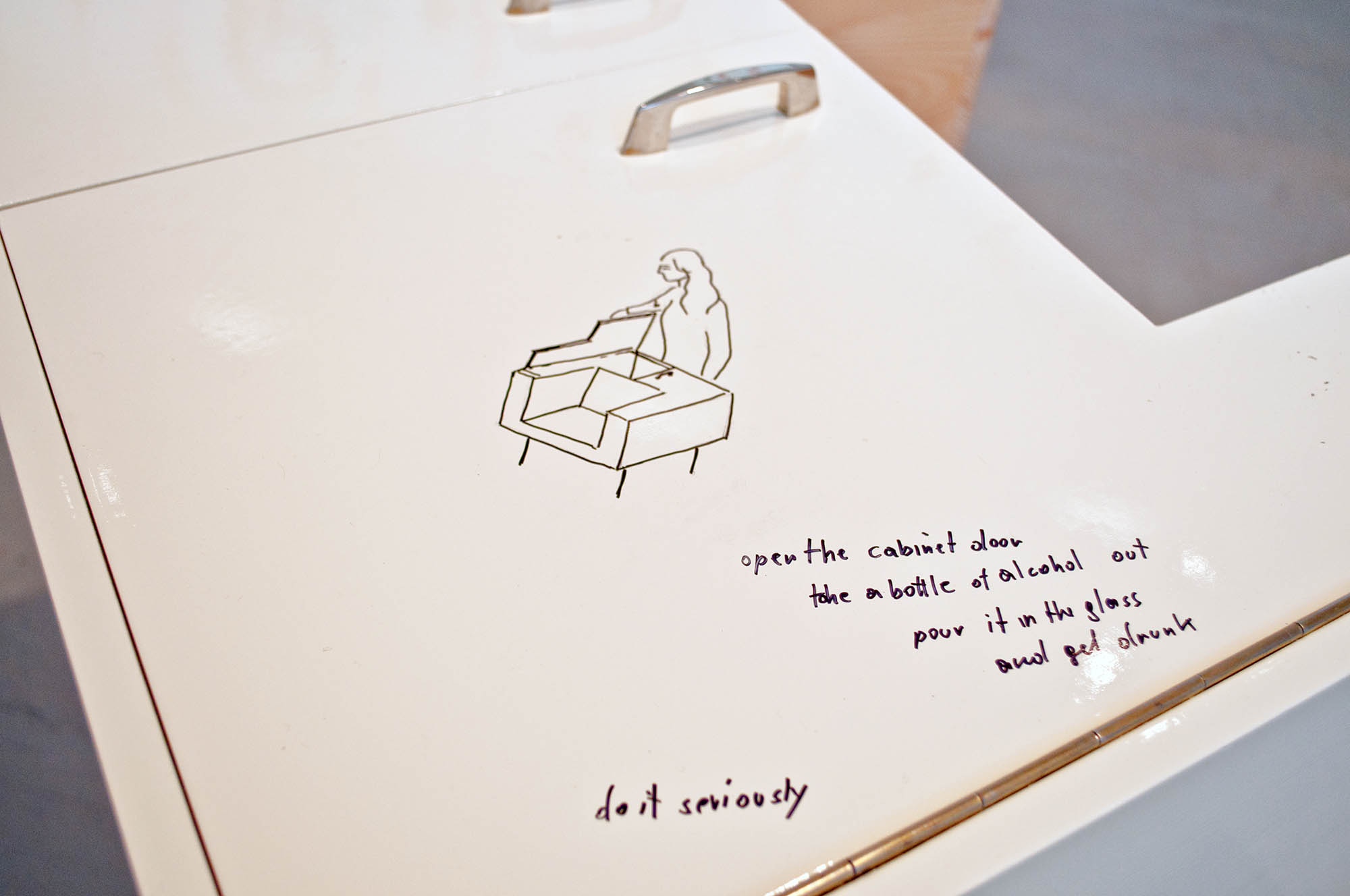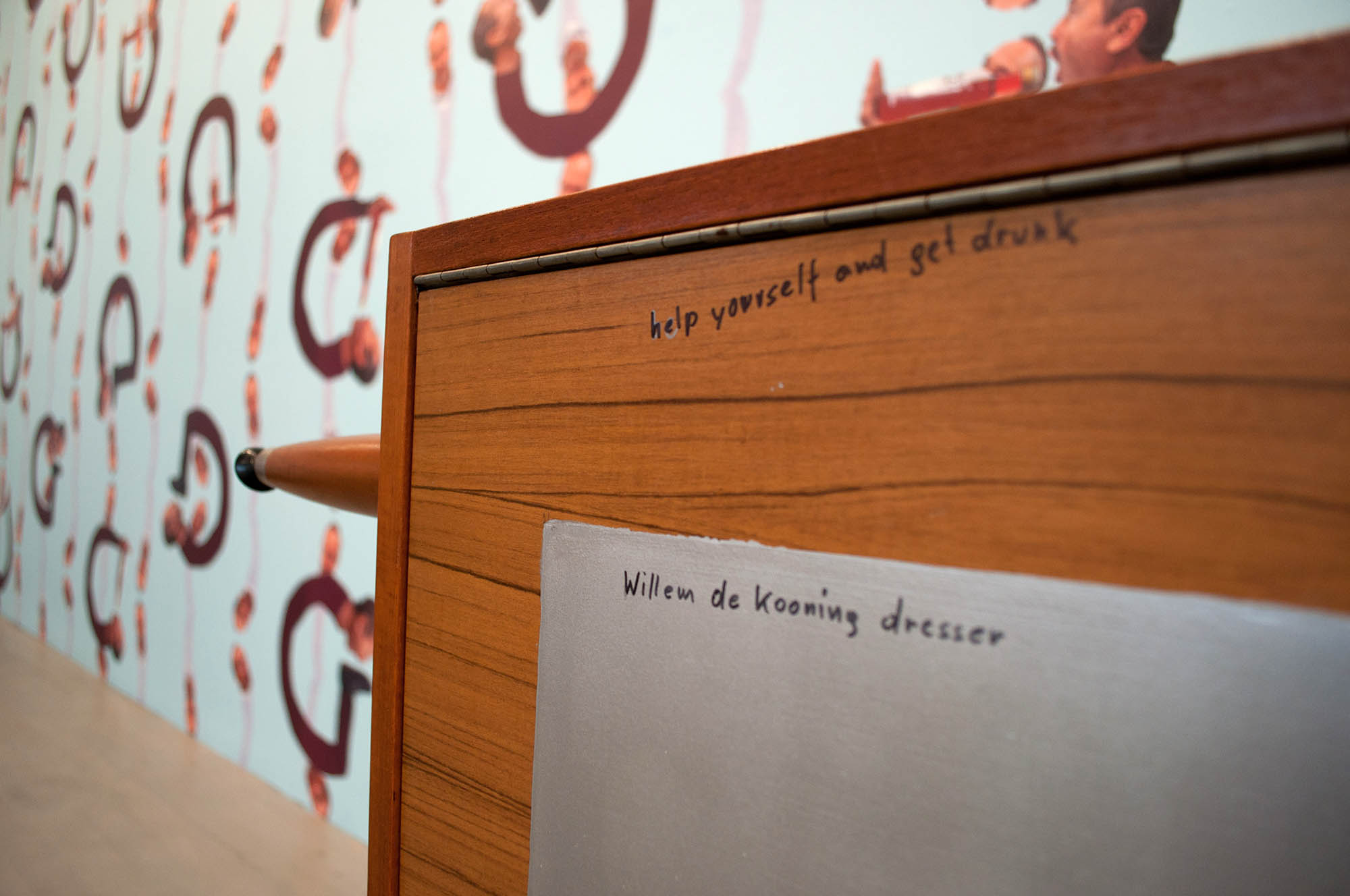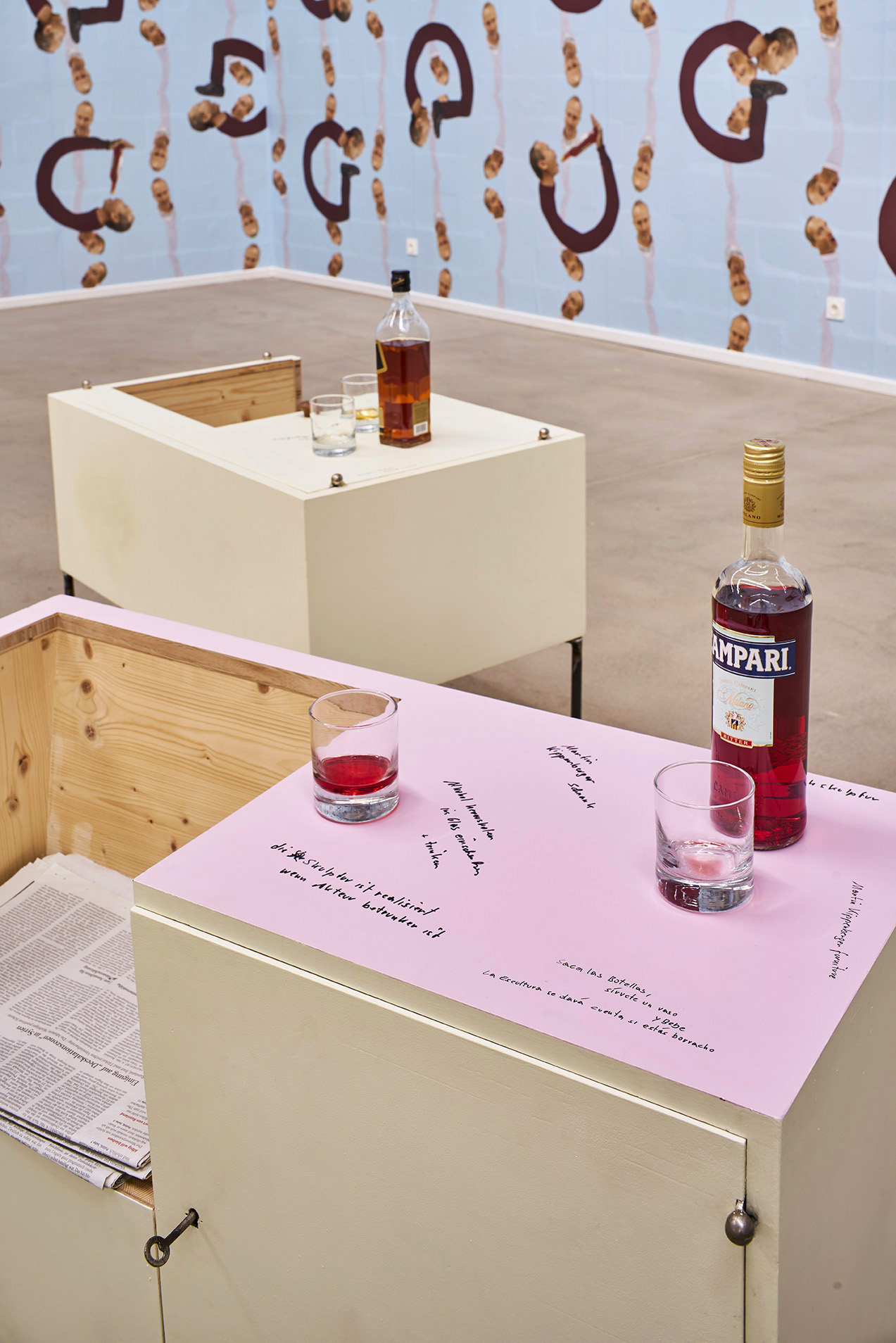 BarStyrofoam, epoxy, paint, closet, alcohol bottle, glass