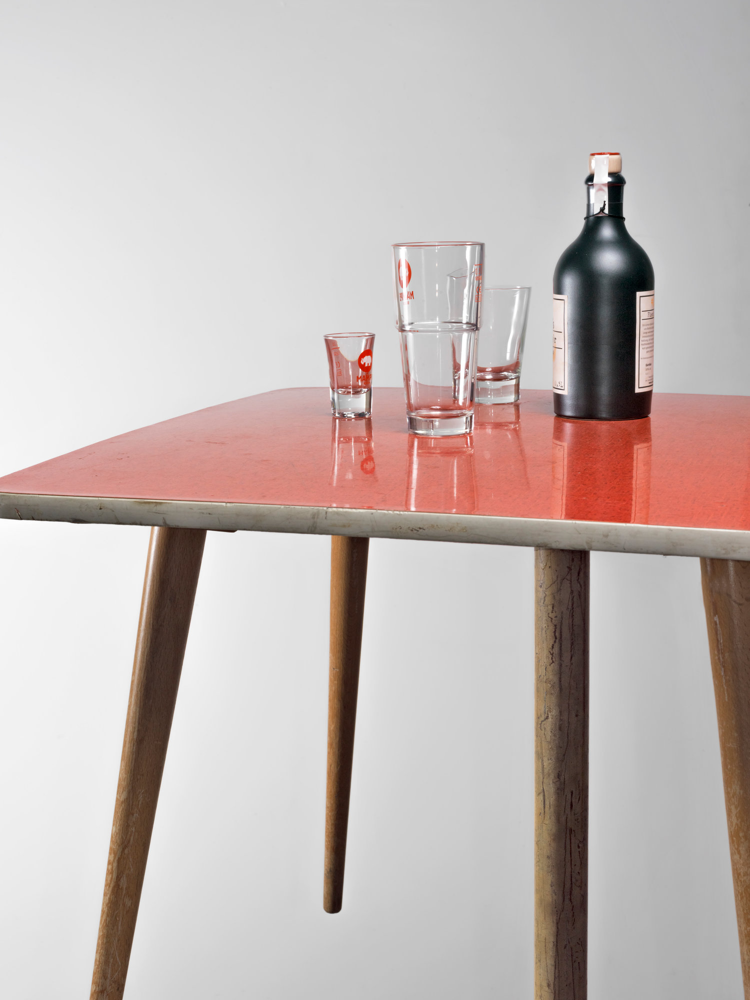 BarMetal, bronze, patina, table, alcohol bottle, glass